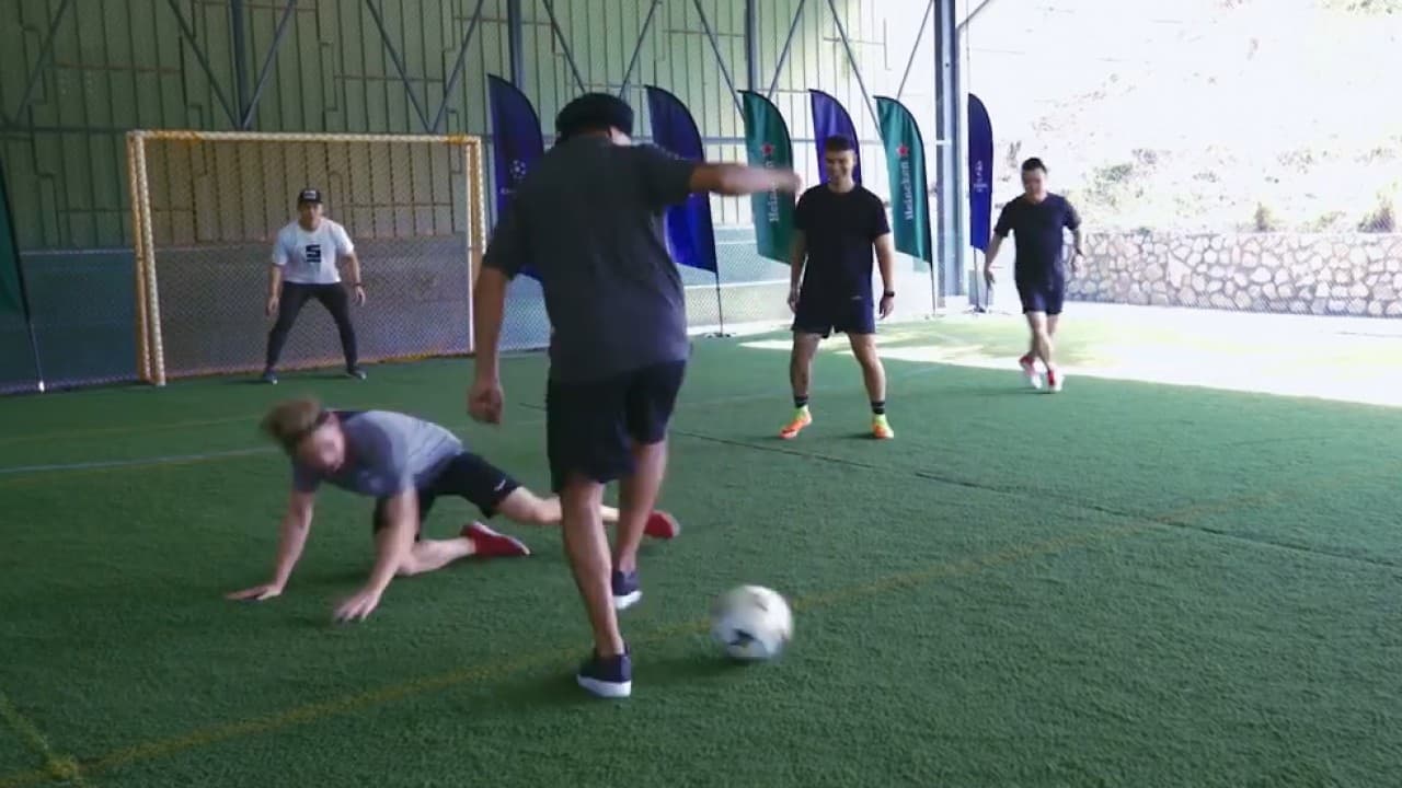 Ronaldinho no tuvo compasión con estos youtubers: golazo, sombreritos y una cadera 'rota'