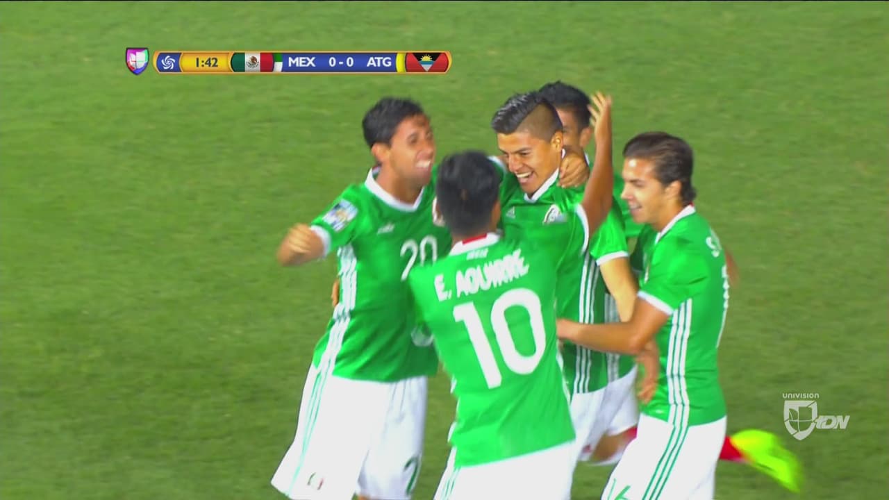 El santista Ronaldo Cisneros madrugó a la zaga caribeña y "El Tri" ya gana.