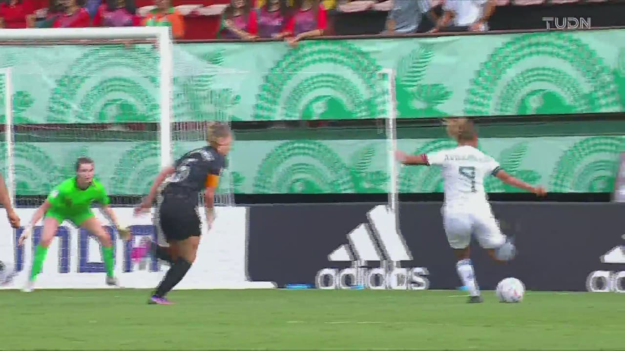 Alexia se movió bien en el área y el derechazo se fue apenas a un costado del arco de Nueva Zelanda al 88’.