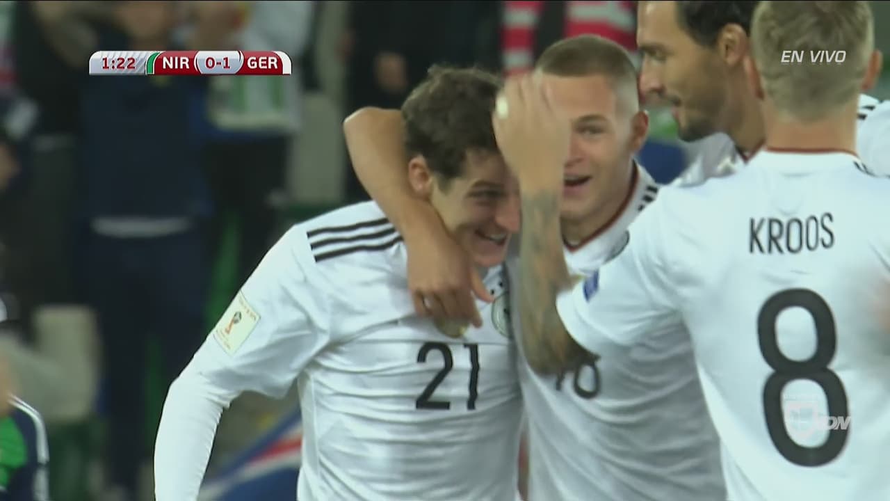 El volante del Bayern Munich necesitó poco más de un minuto para marcar su primer gol con la selección alemana y abrir el marcador en el encuentro de Eliminatorias, con un impresionante disparo desde fuera del área.