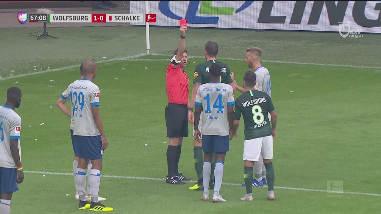 El encuentro entre el Schalke 04 y el Wolfsburg ha dejado una nota muy curiosa, luego que el silbante sacara roja directa por agresión a el holandés Weghorst y estando ya de camino al vestidor decidiera cambiar su decisión.