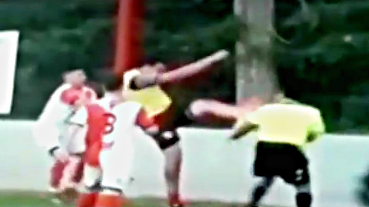 Salvaje y escalofriante patada en la cara a un juez de línea en el fútbol argentino