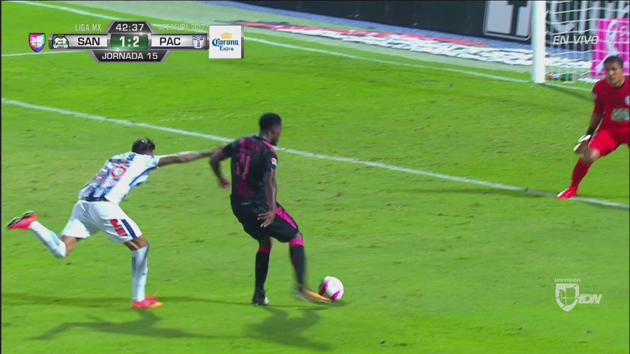 Pero entonces, Djaniny metió a Santos en el partido. A los 42’, entró al área de Pachuca y con un tiro cruzado hizo el 1-2. Un inmerecido premio que Santos aprovechó al máximo.