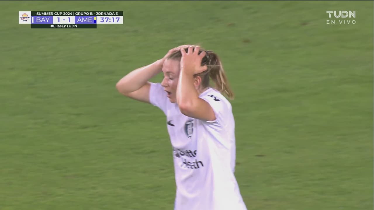 América perdió el balón y por el achique de Sandra Paños, provocó que Moreau no pudiera pegarle bien al balón mandándola por un costado.