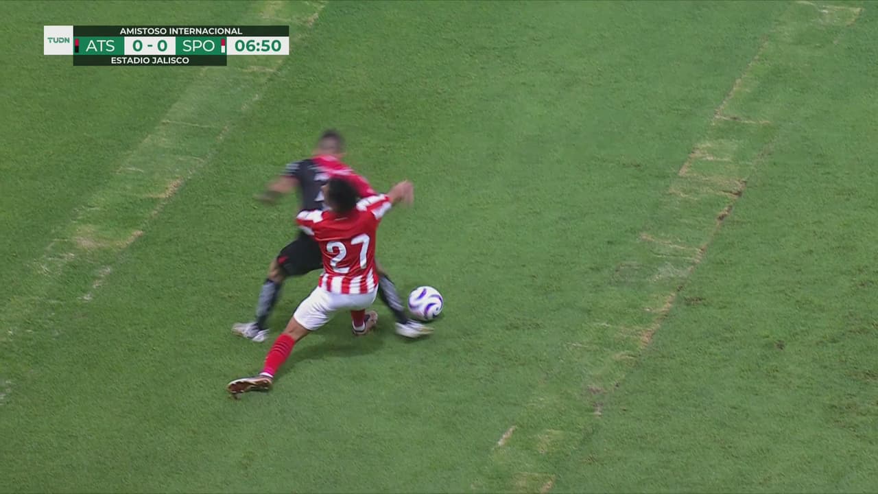 En jugada a medio campo, el Rojinegro levanta de más el codo y se lo deja en el rostro de Coto. Le perdonan la roja a Lozano.