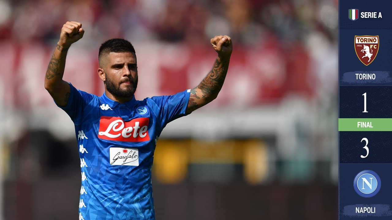 Un doblete de Lorenzo Insigne y un gol de Simone Verdi le dieron al Nápoles la cuarta victoria en cinco partidos en la Serie A y acabaron con un Torino que pagó la baja del español Iago Falque, que sigue recuperándose de una lesión en los flexores del muslo derecho.