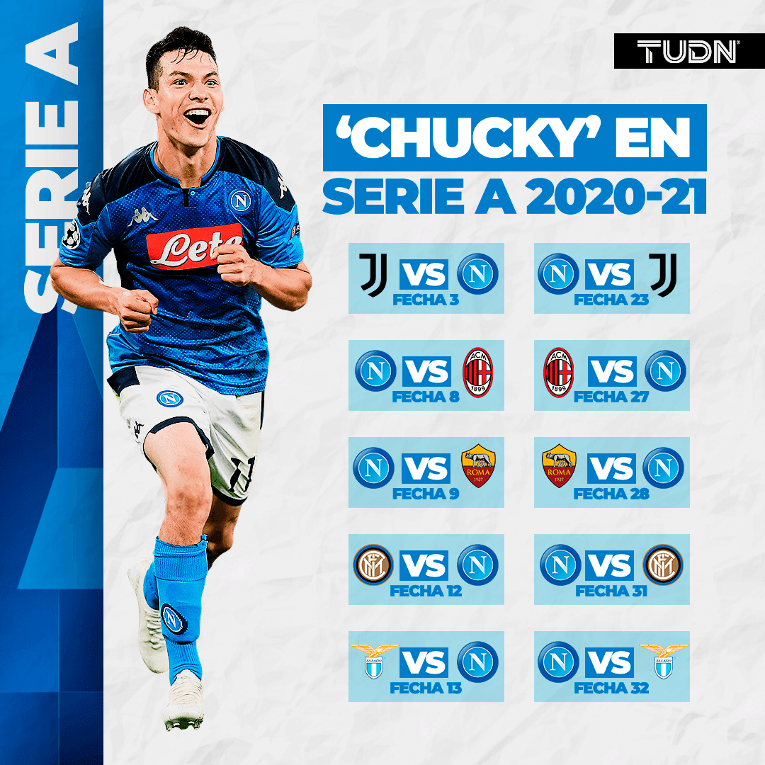 La Serie A reveló el calendario para la temporada 2020-21. El Napoli de Hirving ‘Chucky’ Lozano arrancará la campaña como visitante ante Parma en la Fecha 1, cabe señalar que los partidos de la primera fecha se disputarán entre el 19 y el 20 de septiembre.