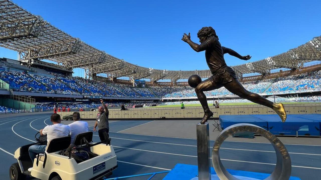 Además del nombre del estadio, el Napoli colocó una estatua de Maradona tras su muerte en el túnel de vestuarios, obra del italiano Stefano Ceci.