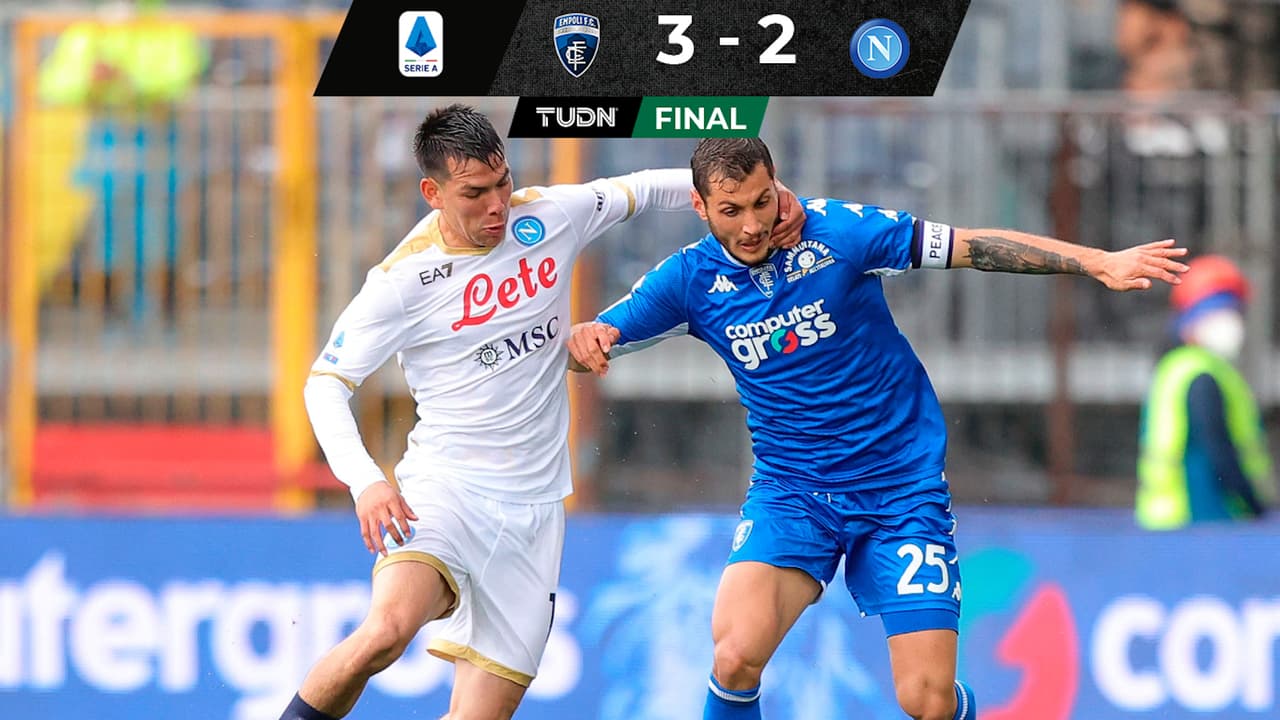 Hirving Chucky Lozano dio una asistencia en la derrota del Napoli 3-2 con goles de Dries Mertens y Lorenzo Insigne, Liam Henderson y doblete de Andrea Pinamonti por el Empoli aunque siguen en el tercer puesto de la Serie A .