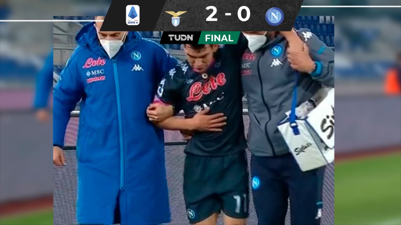 Hirving Lozano abandonó el terreno del Olímpico de Roma sin poder caminar por una lesión, aparentemente grave, en el tobillo izquierdo en el partido del Napoli ante la Lazio por la Serie A.