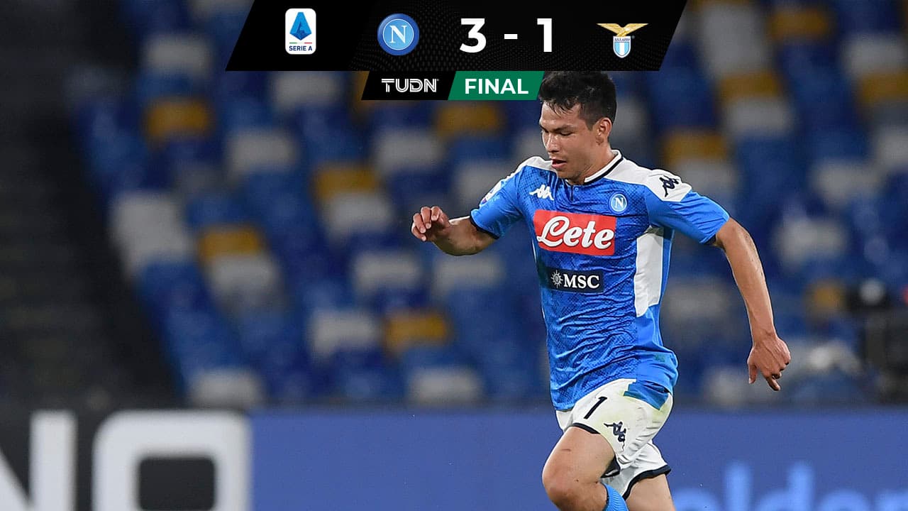 Napoli venció por marcador de 3-1 a la Lazio en la última fecha del campeonato italiano. El mexicano Hirving Lozano participó tan sólo unos minutos en el encuentro, ingresando al terreno de juego al minuto 82 y solamente consiguiendo un disparo al arco y siendo víctima de una fuerte patada a punto de concluir el duelo.