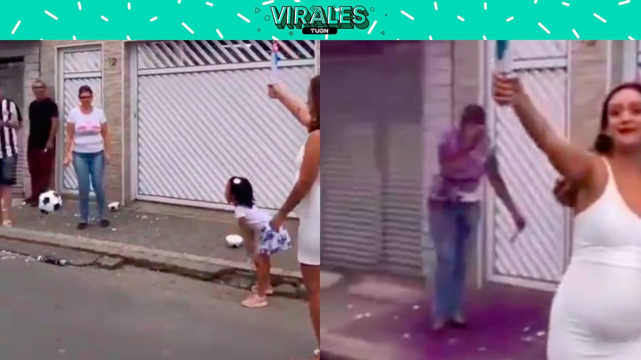 Un aficionado usó un balón de futbol para conocer el sexo de su bebé y una invitada estuvo demasiado cerca.