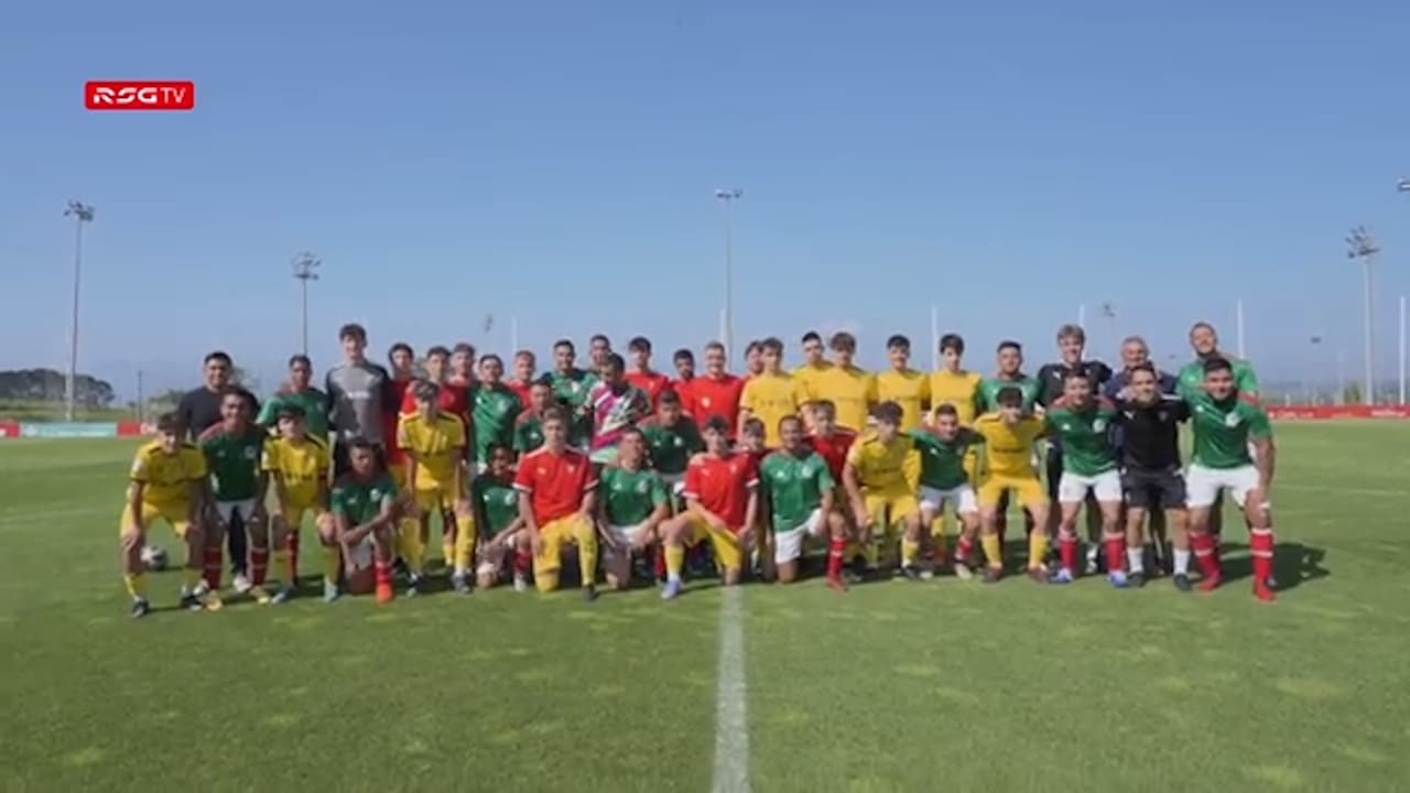 Por la tarde, un grupo de ellos disputó un encuentro amistoso ante una selección de cadetes y otra de alevines rojiblancos en la Escuela de Fútbol de Mareo.