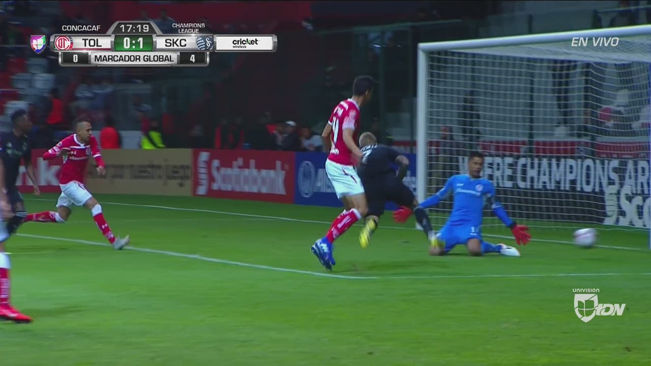 El arquero de Toluca estuvo atento para tapar lo que pudo ser el segundo tanto del Sporting KC.