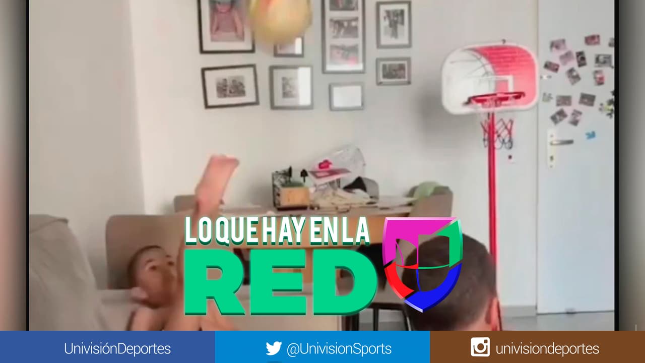 Este pequeño, medio acostado en un sofá, es sorprendido por un balón al que, con la magia de un crack, patea de chilena y mete en la cesta de básquet. Lo mejor es la expresión de él y su amigo, tras la pirueta.