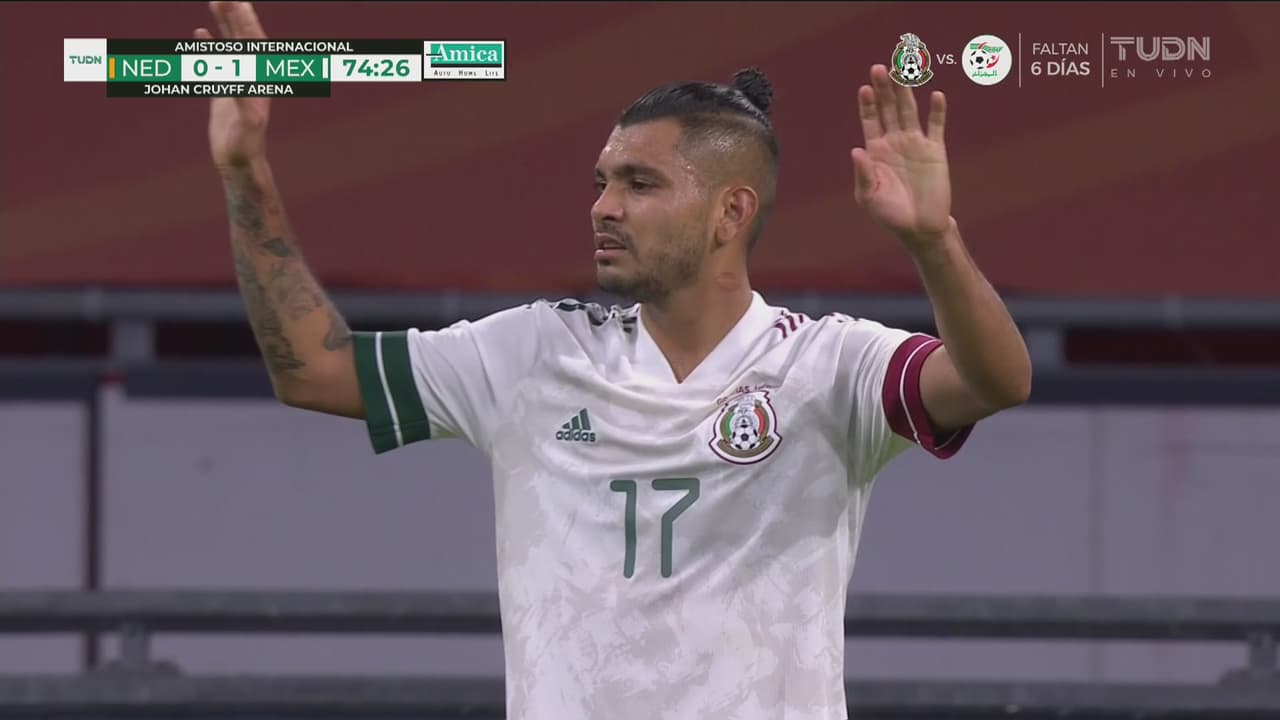 El mexicano se llevó al zaguero holandés en gran maniobra, después su tiro lo desvió Krul al 60’.