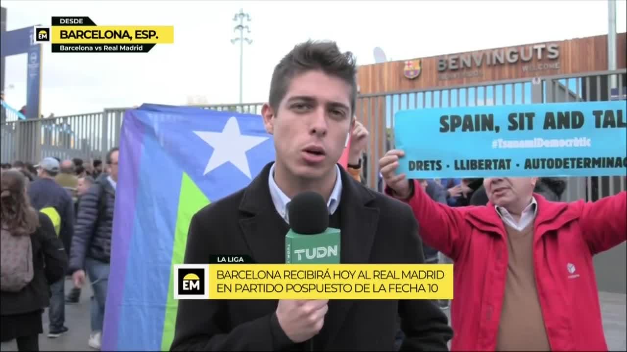 Estamos en el Camp Nou. El colectivo independentista que ha convocado las manifestaciones informa de que es imprescindible para el movimiento que el partido se juegue, y reparte una lista de directrices para la no violencia. La cobertura de TUDN va más allá del Clásico. pic.twitter.com/NHN2xfa92m