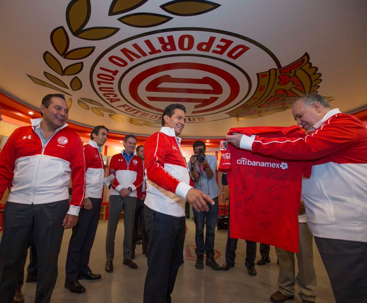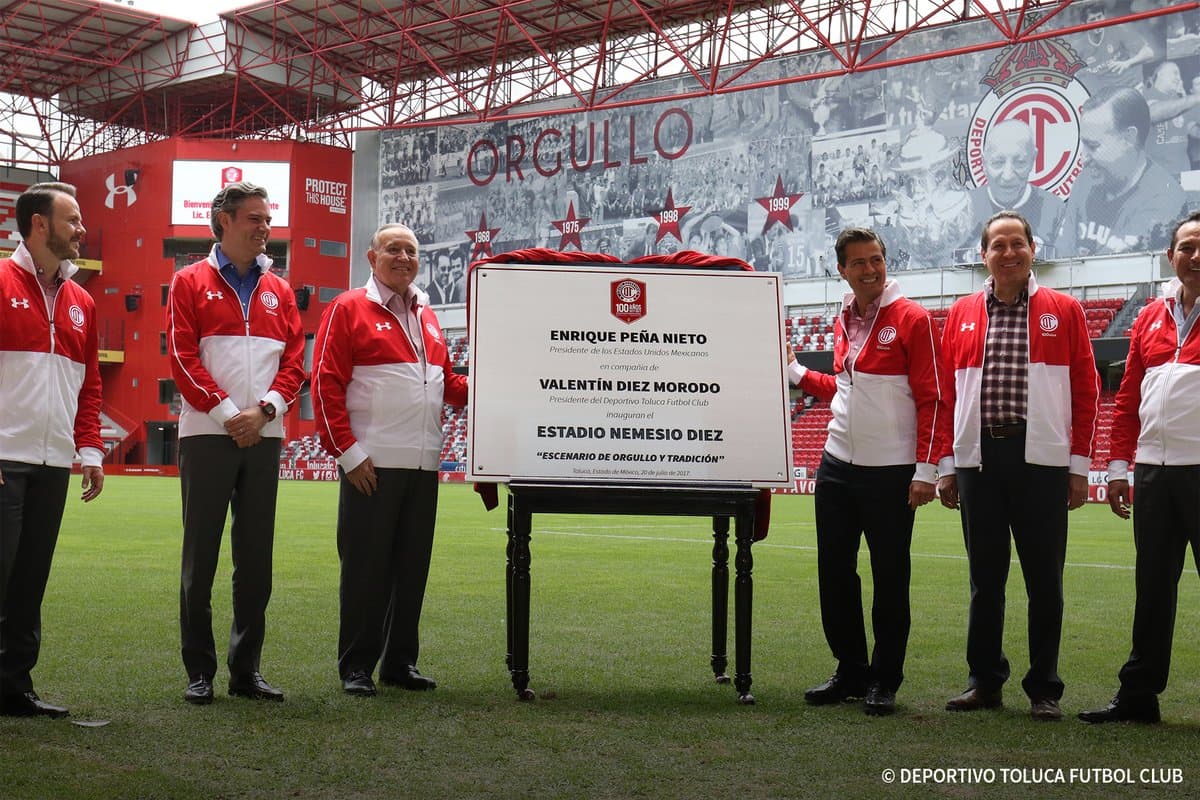 Los Diablos Rojos develaron la placa de su estadio con la presencia del presidente de México, Enrique Peña Nieto.