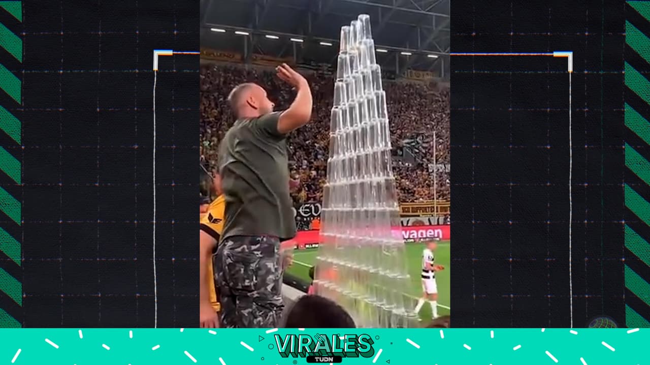 ¡Torre de vasos! En Alemania se entretienen en pleno partido