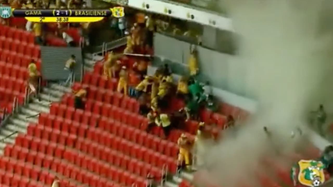 En el descanso y en la recta final del juego, la afición del Gama y el Brasiliense se enfrentaron a puños, patadas y todo tipo de golpes.