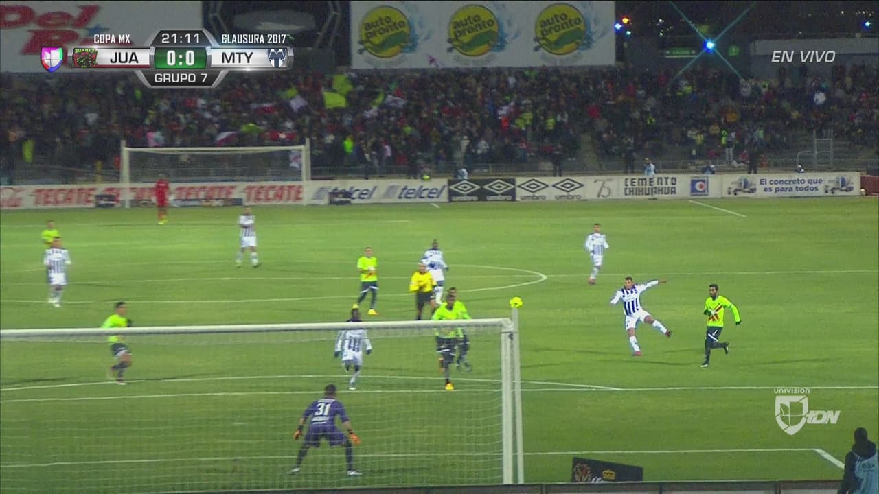 El guardameta de Juárez voló para evitar la que pudo haber sido una gran anotación del colombiano.