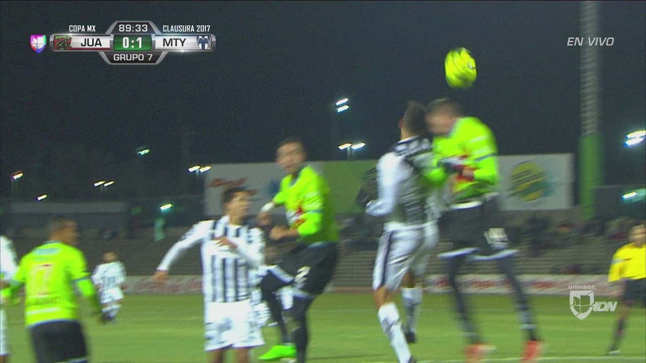Ambos defensas se estrellaron luego de buscaban el esférico durante el encuentro entre Juárez Fc y Monterrey.