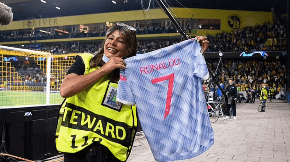 Cristiano Ronaldo tuvo un gran gesto con una mujer del personal de seguridad en el estadio del Young Boys en la Champions League luego de que ella cayera seminoqueda tras un balonazo en el calentamiento del Manchester United.