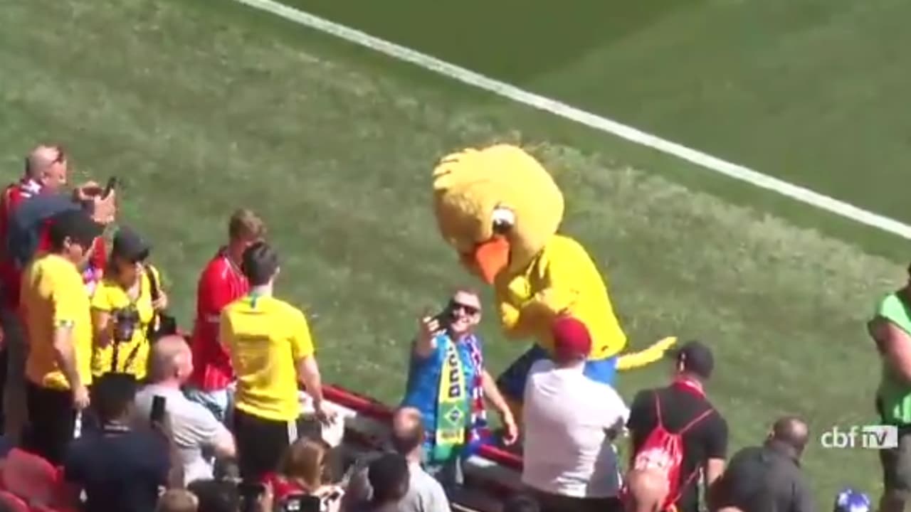 Tremendo gesto de la mascota de Brasil con un pequeño