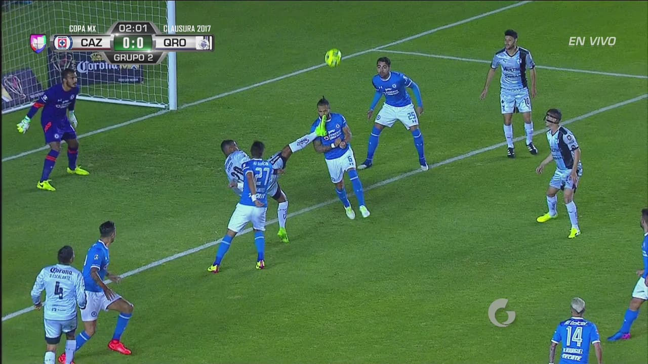 En su intento de pegarle al balón, Andrés Rentería golpeó al jugador de Cruz Azul.