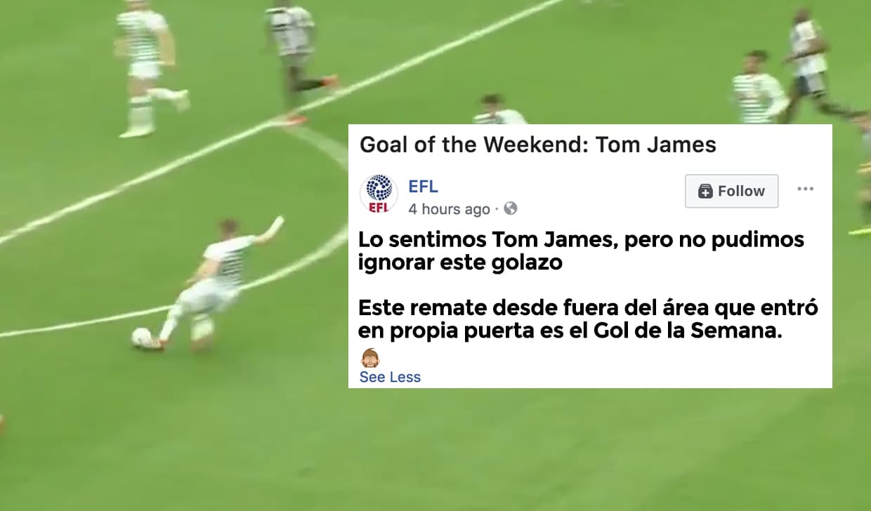 El defensor Tom James del Yeovil Town fue el galardonado con el reconocimiento luego de un espectacular disparo desde fuera del área.