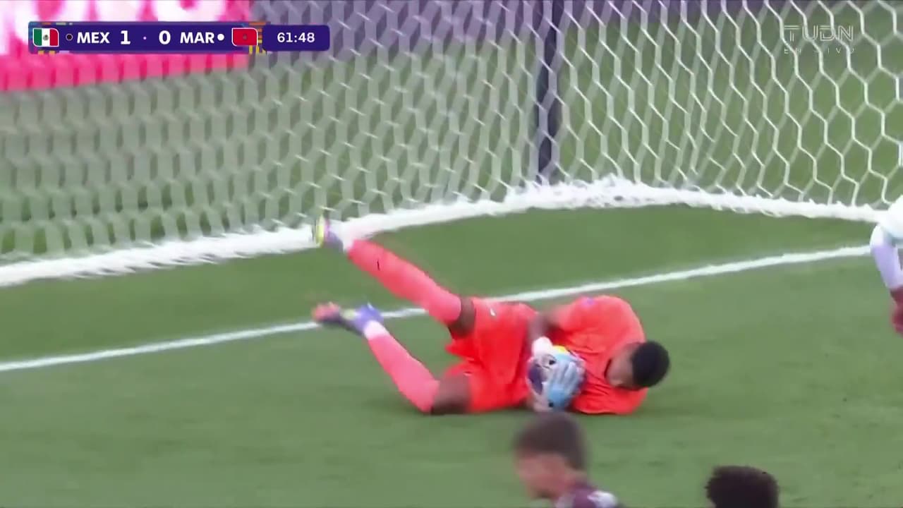 Gran jugada de Yael Padilla por la banda que deja solo a Jiménez pero su remate no logra vencer al portero marroquí.