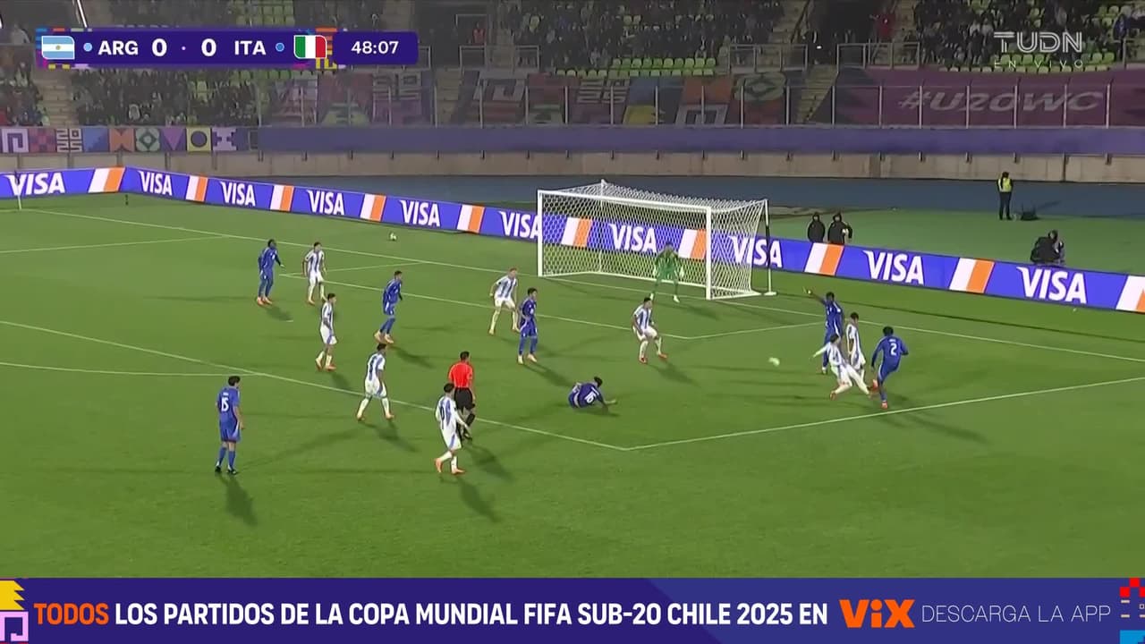 Tras la revisión en el VAR por petición de Italia el árbitro decide que no hay penalti.