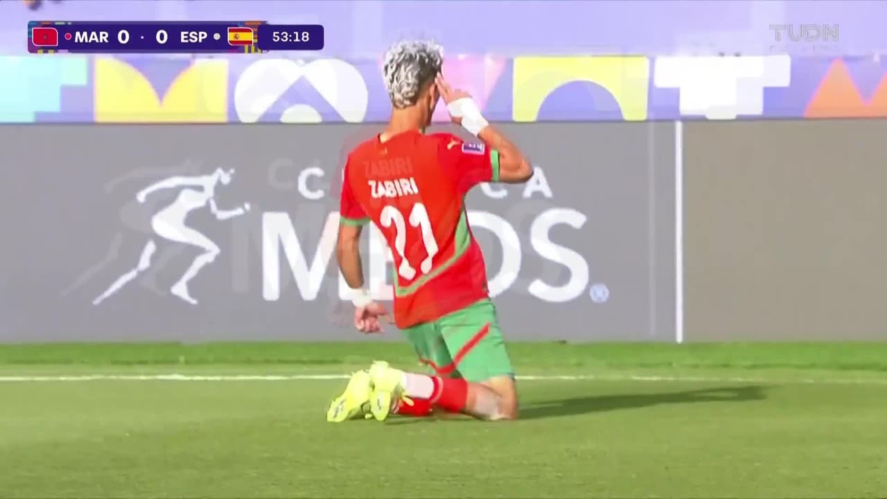 Las cosas parecían complicarse para Marruecos en los últimos minutos con el penal sobre Jan Virgili, quien se quedó con las ganas luego de la revisión del VAR, pues el árbitro determinó que no hubo contacto y encima lo amonestó por fingir.