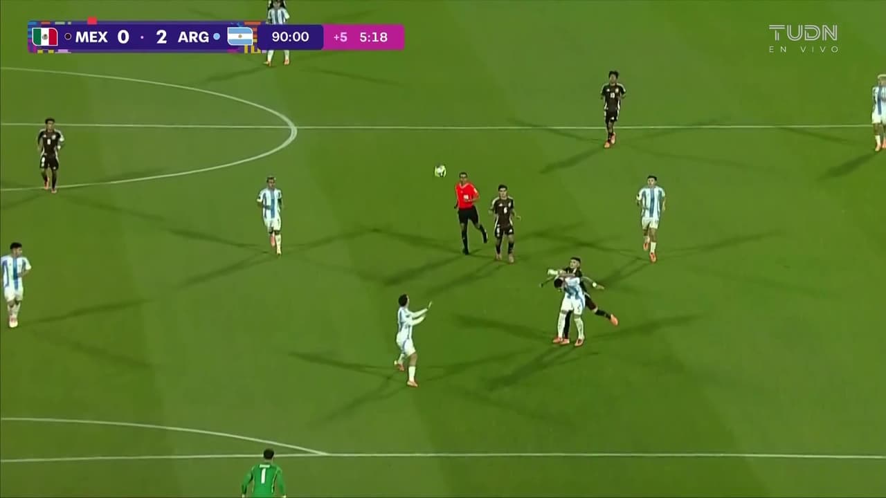 El delantero mexicano se desentiende del balón y agrede al central de la albiceleste.