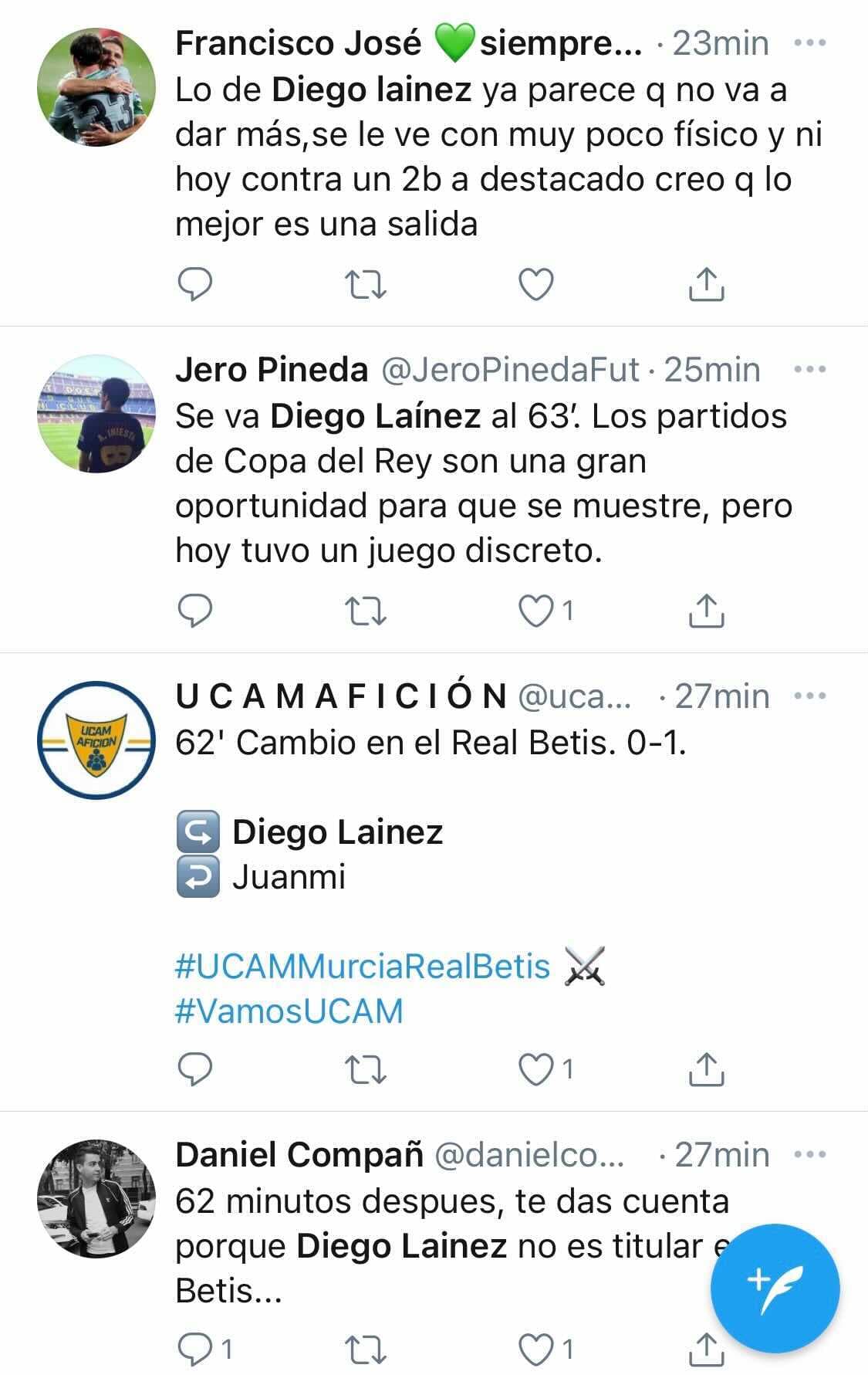 El Real Betis consiguió triunfo de 2-0 a domicilio en Primera Ronda de Copa del Rey ante el UCAM Murcia en partido que vio el regreso del mexicano Diego Lainez como titular con la escuadra verdiblanca después de varios meses.