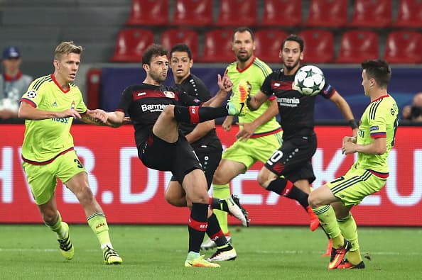 El Leverkusen fue arrollador, generando jugadas de peligro por las dos bandas y por el centro. Apenas al minuto 9, Admir Mehmedi adelantó a las aspirinas con una polémica jugada en la que aparecía en fuera de lugar para fusilar al arquero ruso.