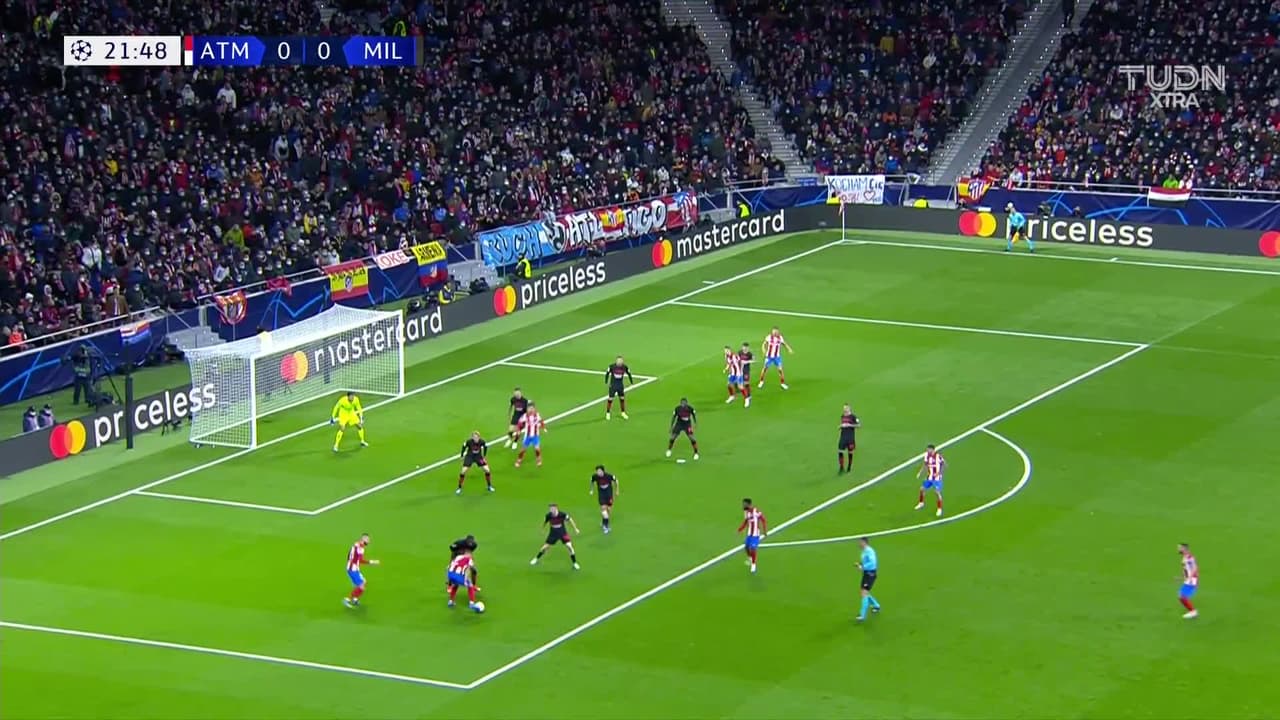 Antoine Griezmann (Atlético de Madrid) remata palo| Disparo con la derecha desde el centro del área.
