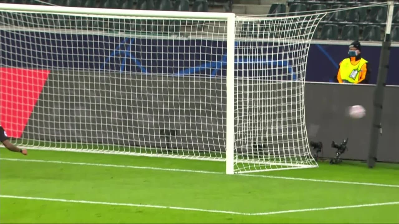 Breel Embolo (Borussia M'Gladbach) remata al poste derecho| Disparo con la derecha desde fuera del área. Asistencia de Lars Stindl.