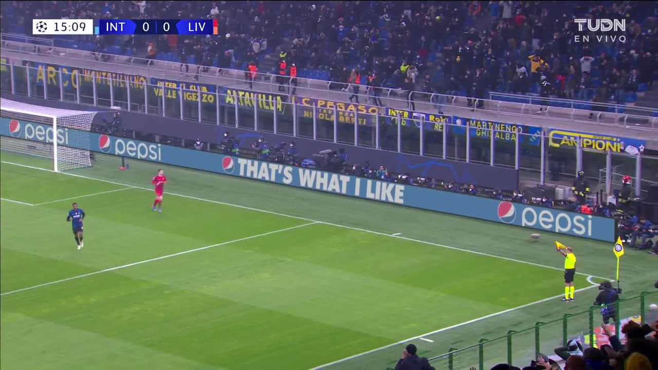 Hakan Calhanoglu (Internazionale) remata al travesaño| zurdazo desde el lado izquierdo dentro del área. Asistencia de Ivan Perisic con un centro al área.