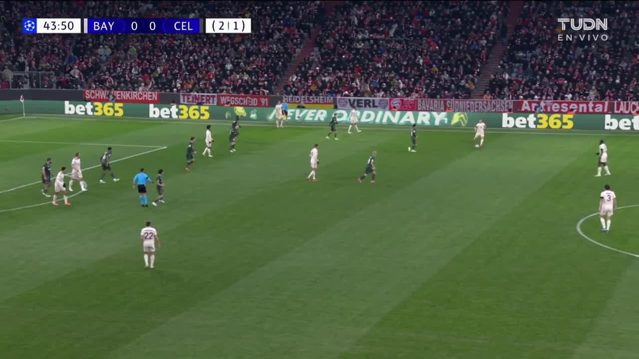 Harry Kane (FC Bayern München) remata palo| Disparo con la derecha desde el centro del área.