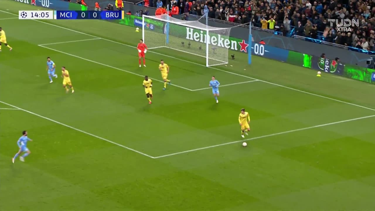João Cancelo (Manchester City) remata palo| Disparo con la derecha desde fuera del área.