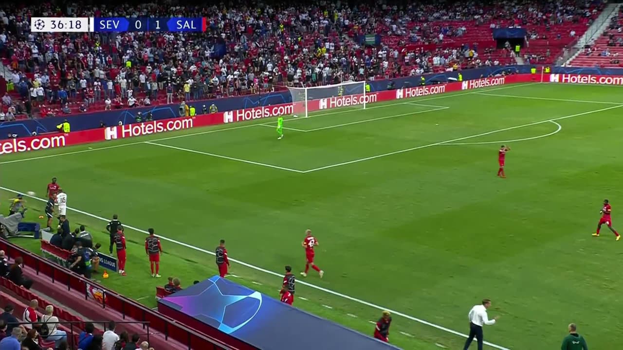 ¡Penalti fallado! Sevilla 0| FC Red Bull Salzburg 1. Luka Sucic (FC Red Bull Salzburg) remata palo| zurdazo.