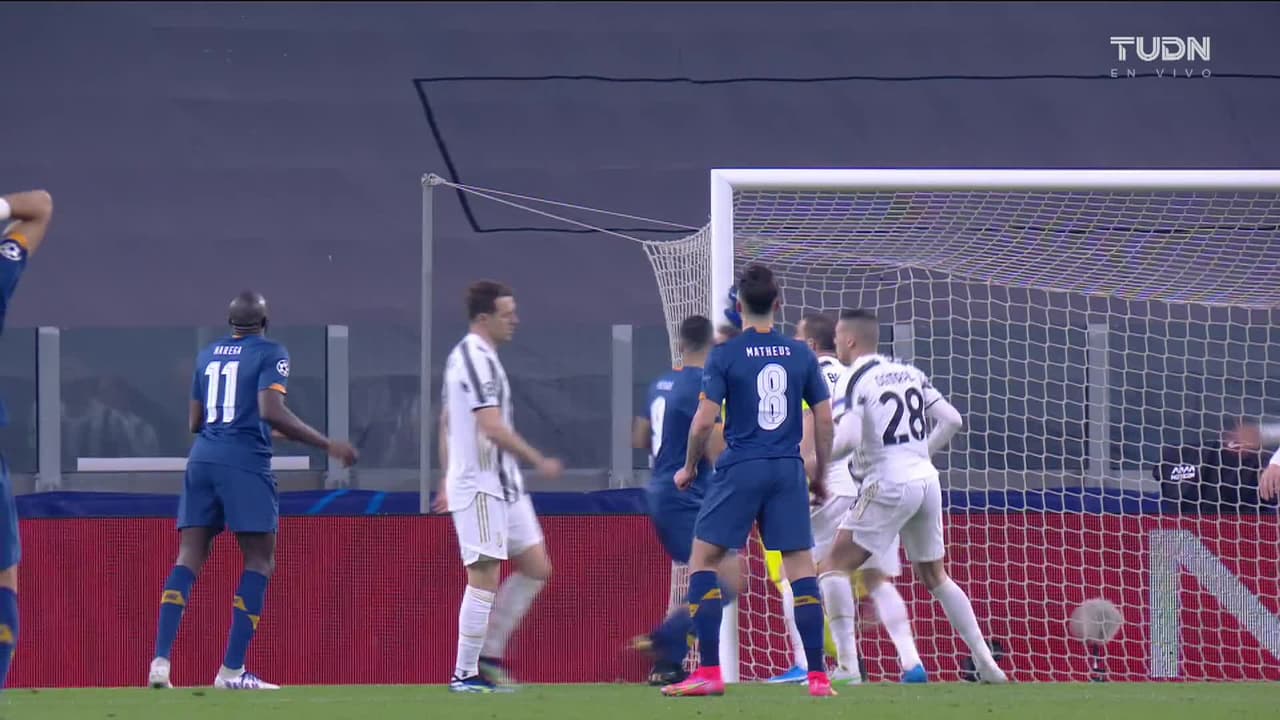 Mehdi Taremi (FC Porto) remata al travesaño| disparo de cabeza desde el centro del área.