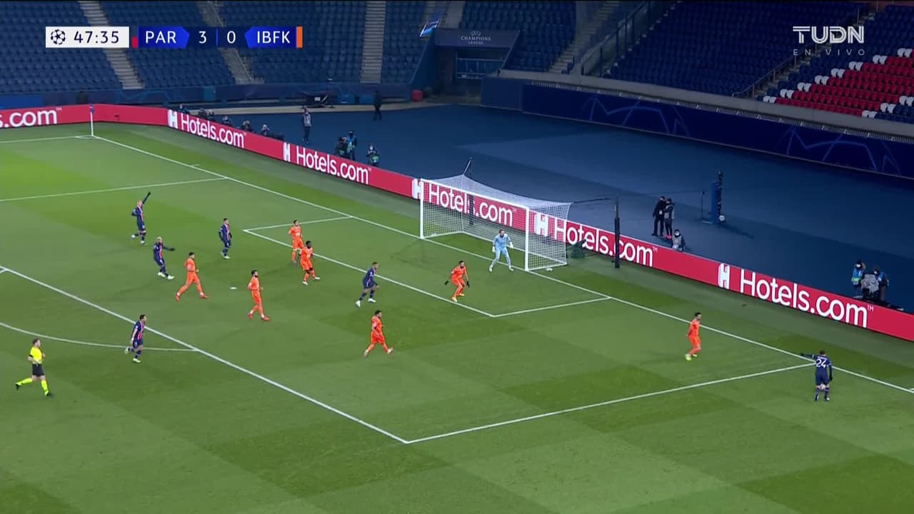 Mitchel Bakker (Paris Saint-Germain) remata palo| Disparo con la derecha desde el centro del área.