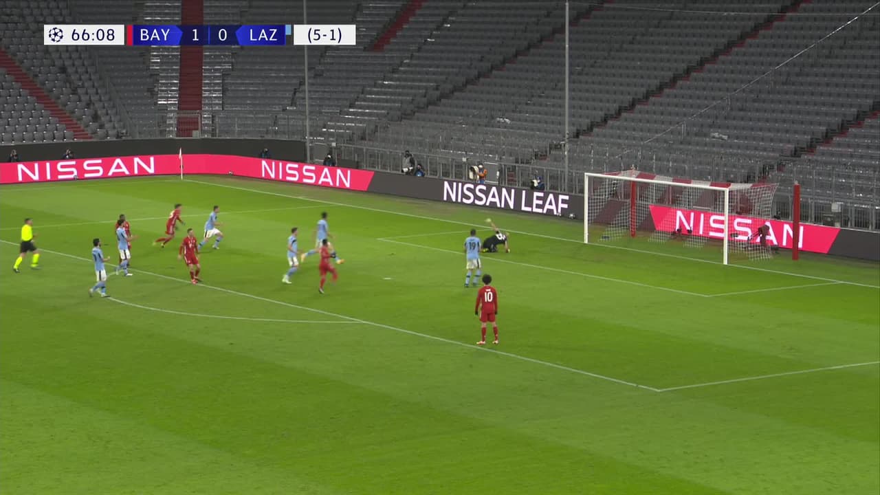 Robert Lewandowski (FC Bayern München) remata al poste izquierdo| Disparo con la derecha desde fuera del área. Asistencia de David Alaba.