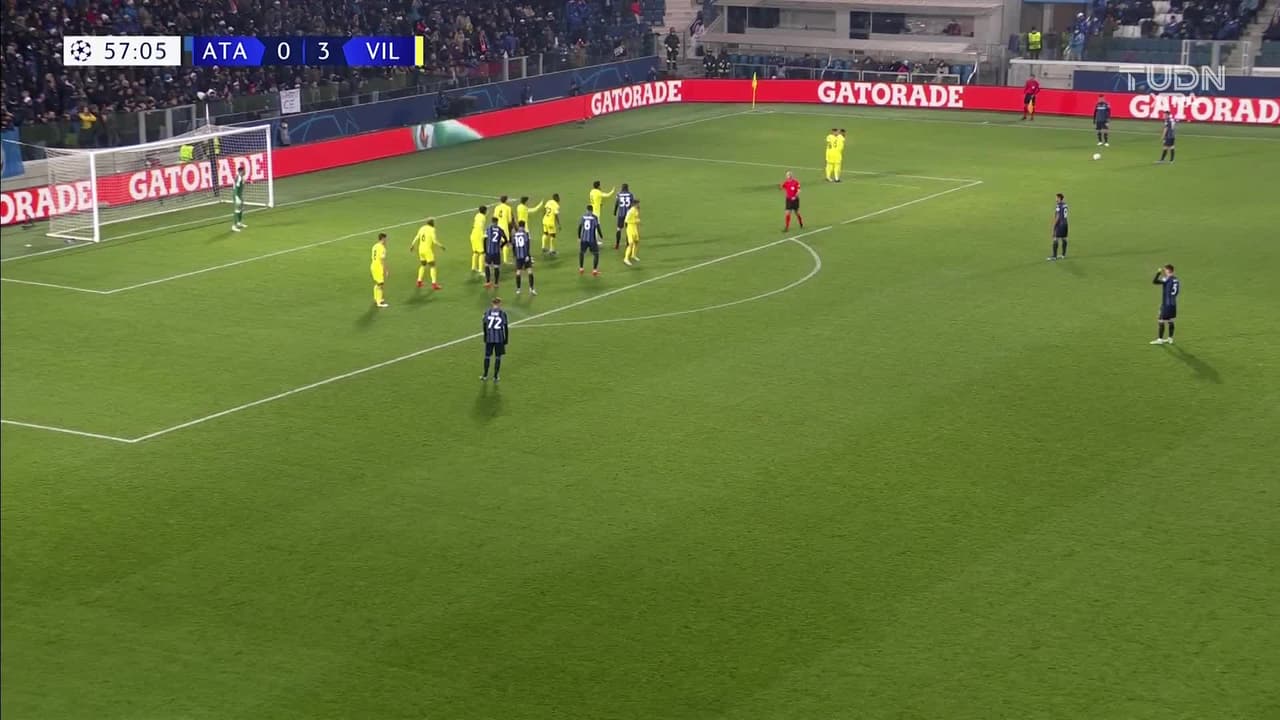 Ruslan Malinovskyi (Atalanta) remata al travesaño| zurdazo desde la banda derecha de tiro libre directo.