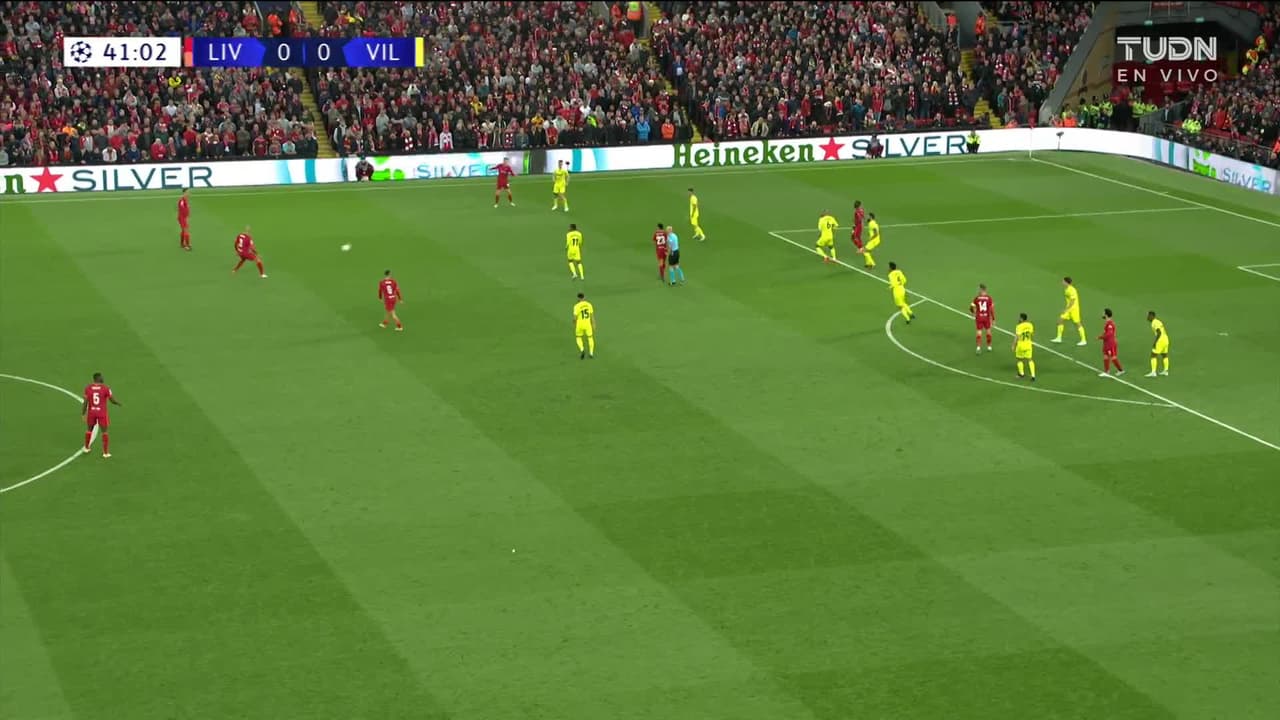 Thiago (Liverpool) remata palo| Disparo con la derecha desde fuera del área.