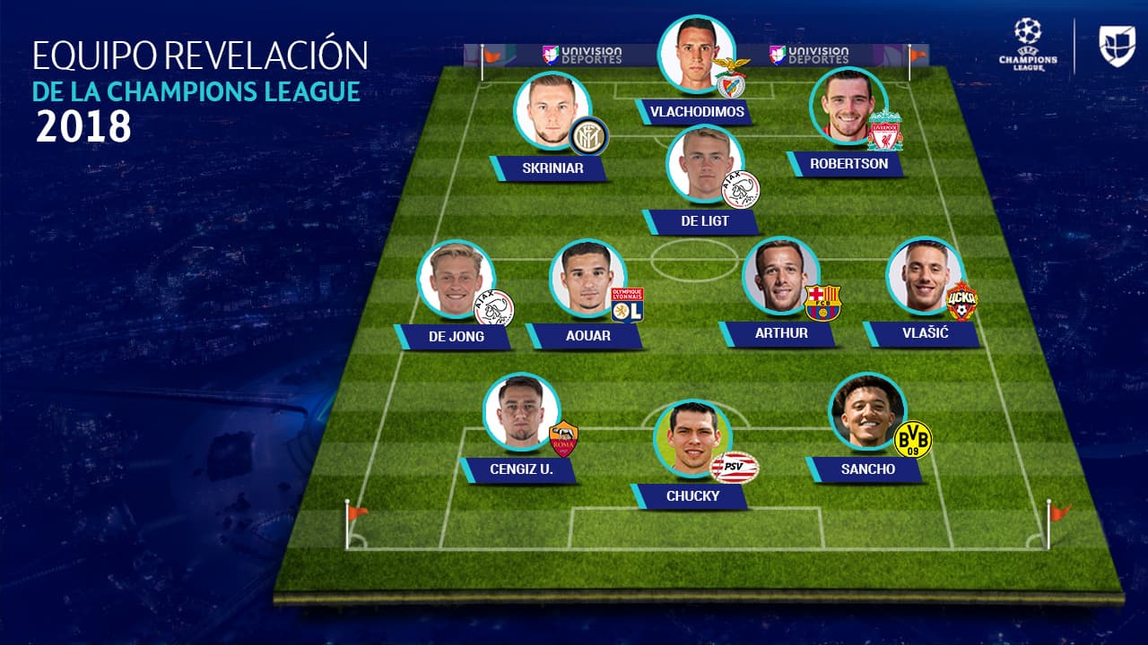 Se trata de jóvenes promesas menores de 23 años que deslumbraron con sus actuaciones en la fase grupal. Junto a Chucky, están Arthur del Barcelona y Frenkie de Jong del Ajax.