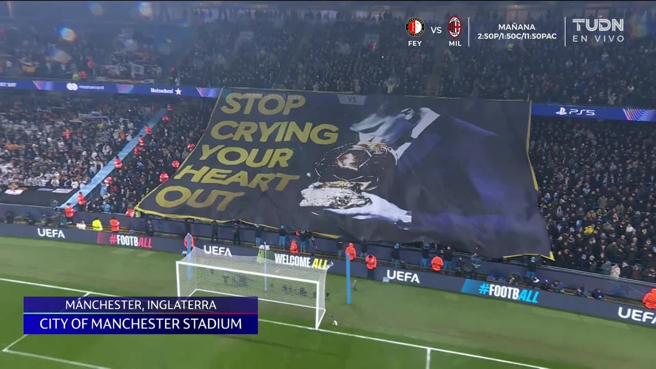 Luego del hostil recibimiento que tuvo Vinícius Júnior en el Etihad Stadium para el Manchester City vs. Real Madrid, aclararon que la pancarta gigante que salió con la imagen de Rodri besando el Balón de Oro y la frase “deja de llorar” no era para él.