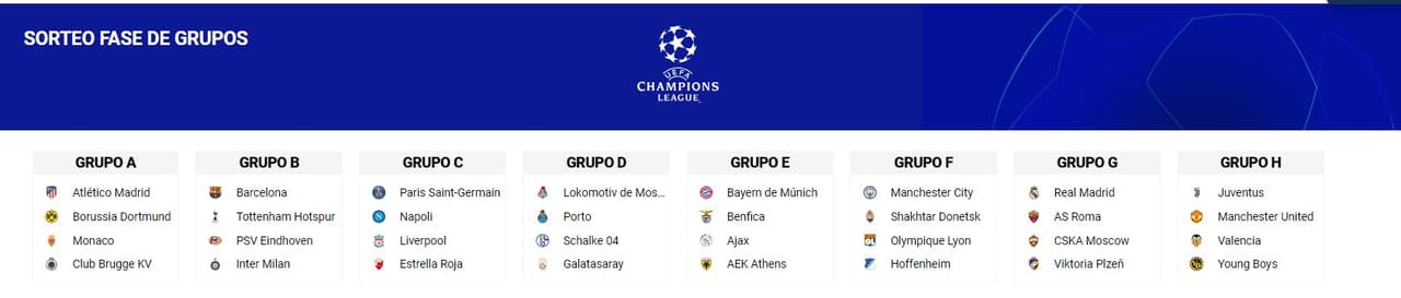 La fase de Grupos de la Champions League queda de la seiguiente forma.